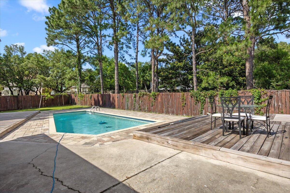 **NEW PRICE** SELLER OFFERING $5K CREDIT TO BUYER** Wait till you see the fenced backyard and gorgeous pool. No HOA Dues! Don't miss out on this rare opportunity to own 1/4 acre in the heart of Destin!  Cute home with 3 beds and 2 baths, large backyard, pool, oversized deck, and plenty of green space.  Inside you will find 10 ft ceiling in main living area, granite countertops, and French doors that open up to the pool area.  The backyard is the perfect for entertaining and relaxing!  Plenty of space for everyone inside and out of this updated ranch.LOCATION cannot be beat - ONLY 2 MILES to Destin Harborwalk Village, Mattie Kelly Park, restaurants, shopping, and activities!