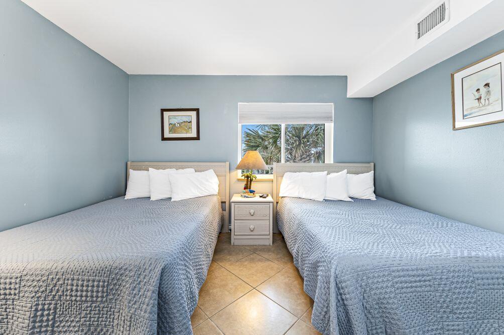 Stunning Beach Retreat! This beautifully remodeled unit is the perfect beach retreat, offering a blend of comfort and style that will make every stay unforgettable. As you enter, you'll be greeted by a charming bunk area featuring a twin bed and a TV. The fully stocked kitchen has gorgeous new countertops and Kraftmade cabinetry, providing everything you need to whip up a delicious meal. The large living and dining space is perfect for unwinding after a fun-filled day at the beach or pool, which is conveniently located just outside the front door. Retreat to the beautifully decorated bedroom, complete with a queen-size bed and an entrance to the bath for added privacy. Enjoy easy access with ground floor living, along with new hurricane windows and sliding door for peace of mind.